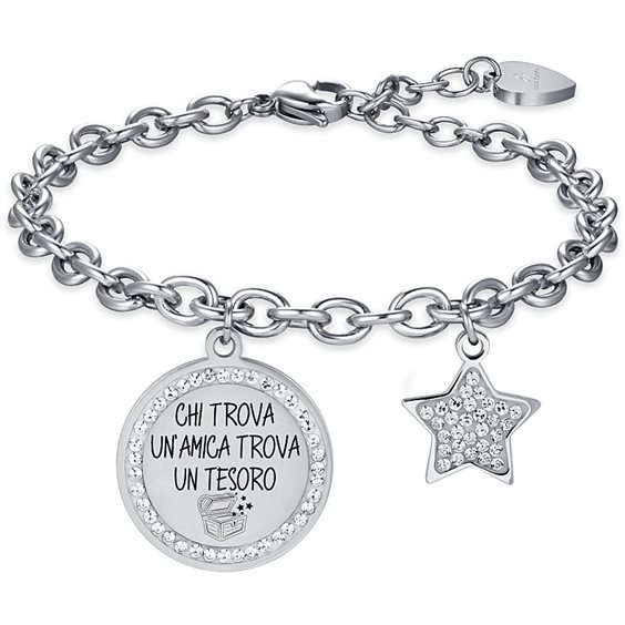 Bracciale da donna di Luca Barra in acciaio "charms trova un'amica trova un tesoro" con smalto nero