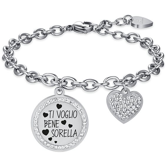Bracciale da donna di Luca Barra in acciaio "ti voglio bene sorella" con smalto nero.