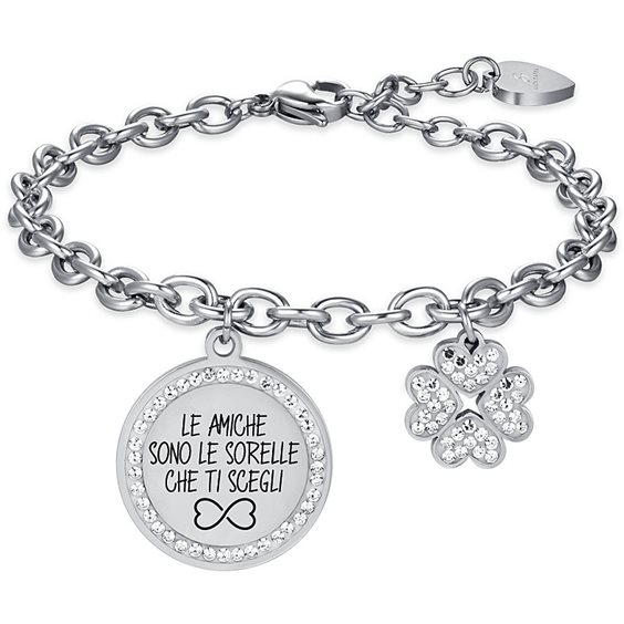 Bracciale da donna di Luca Barra in acciaio "le amiche sono le sorelle charms ti scegli" con smalto.