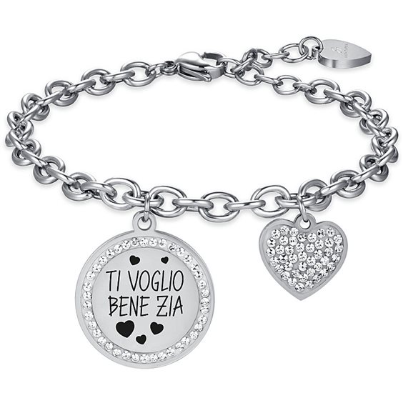 Bracciale da donna di Luca Barra in acciaio "ti voglio bene zia" con smalto nero.