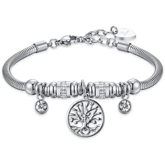 Bracciale da donna di Luca Barra in acciaio con albero della vita e cristalli bianchi.
