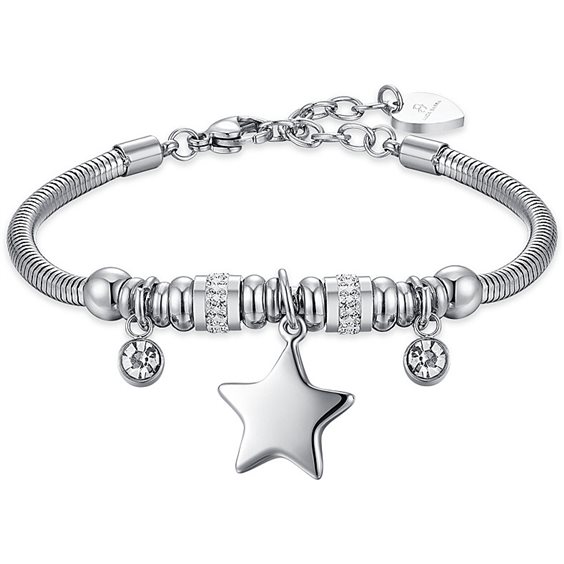 Bracciale da donna di Luca Barra in acciaio con stella e cristalli bianchi