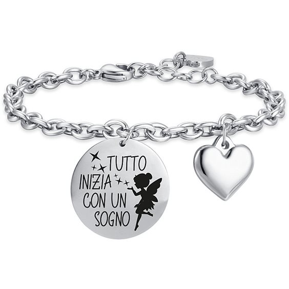 Bracciale da donna di Luca Barra in acciaio "tutto inizia con un sogno" con smalto nero
