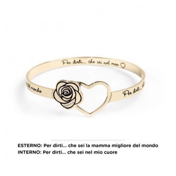 Bracciale rigido pvd oro, nel mio cuore con rosa