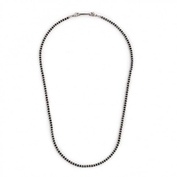 COLLANA CON AGATA NERA SFACCETTATA ACCIAIO - Collana in acciaio con catena box, con alternati elementi di agata nera ed acciaio. Lunghezza totale 52 cm, regolabile da 52 a 50 cm tramite logo tag Marlù in acciaio removibile