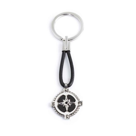 Portachiavi in acciaio con cordino in pelle 3 mm e rosa dei venti Collezione : Man Class 24 Materiali : Acciaio, pelle, legno, onice