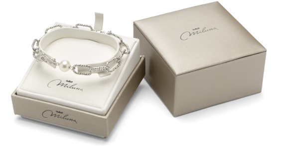 Bracciale maglia a catena da 16 mm con lavorazione diamantata con 1 perla coltivata bianca da 9/9,5 mm. Lunghezza bracciale da 19 a 21 grazie all'uso degli anellini di allungo