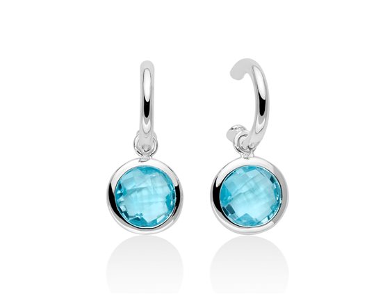 Orecchini donna , argento 925 , pendenti cm 2 , topazio azzurro sfaccettato , pietre incastonate con bordo.